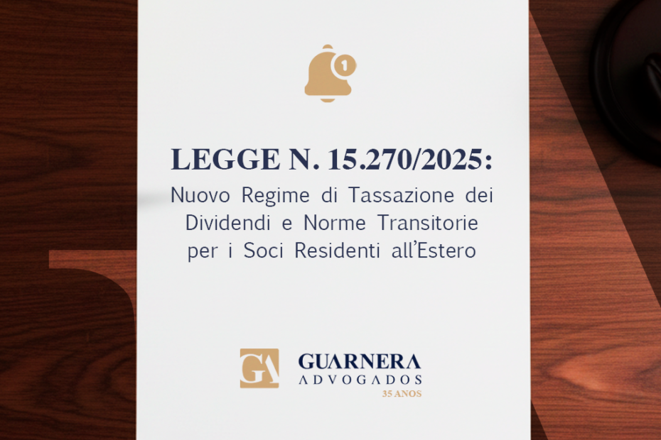 In data 26 novembre 2025, il Presidente della Repubblica ha sancito il Disegno di Legge n. 1.087/2025, successivamente convertito nella Legge n. 15.270/2025, che ha introdotto la più ampia riforma del regime fiscale applicabile ai… Legge n. 15.270/2025: Nuovo Regime di Tassazione dei Dividendi e Norme Transitorie per i Soci Residenti all’Estero